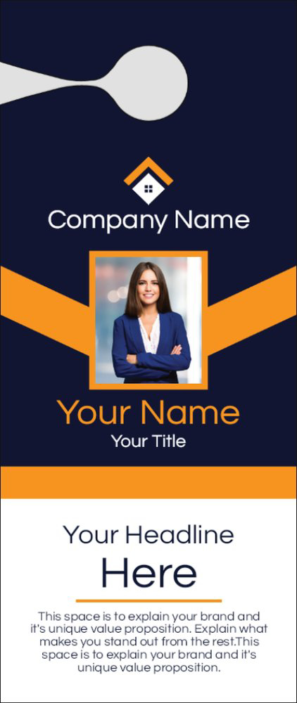 Door hangers are cardstock signs that have a die-cut hole that allows you to suspend from the knob or handle of a door. Door hangers are super economical which makes them a popular choice for consumer marketing.